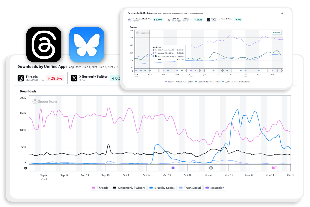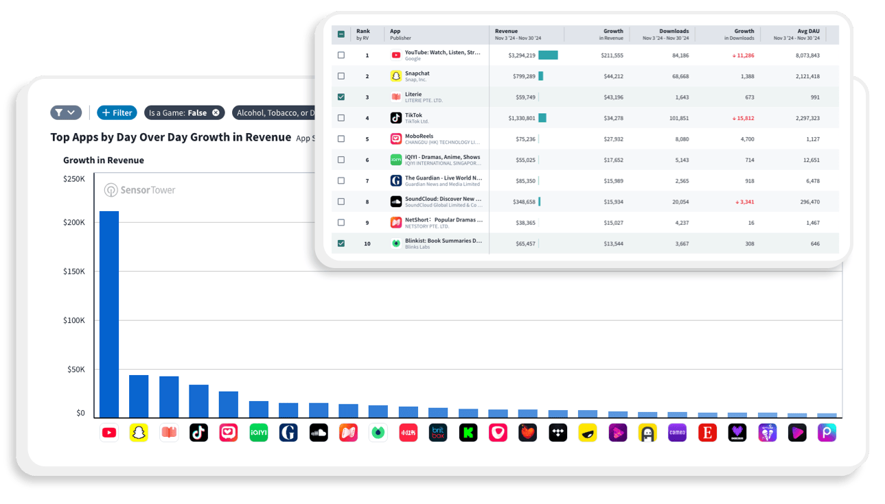 Identify target companies for M&A that would fit your portfolio; compare your app against the market to support your investor conversations.