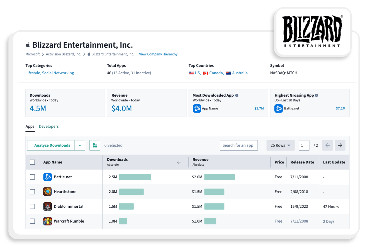 Identify target companies for M&A that would fit your portfolio; compare your app against the market to support your investor conversations.