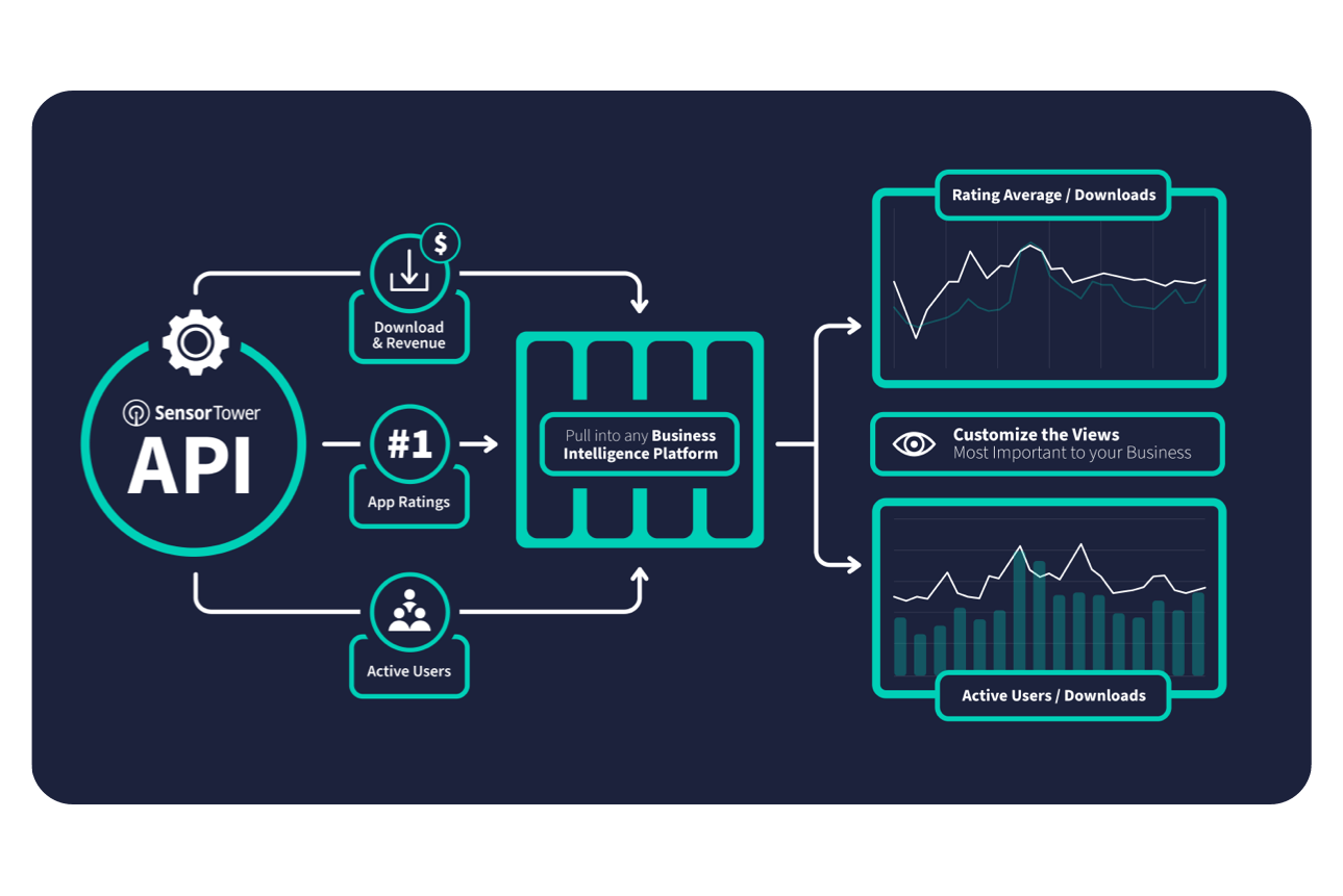 Get Sensor Tower data wherever and whenever you need it. Our API functionality allows you to integrate critical metrics directly into your team’s internal tools. Our APIs are designed to support anything from fetching small datasets to processing high-volume data operations so that your developers and analysts can programmatically access Sensor Tower’s digital insights. Our API enables you to monitor key metrics that are updated daily, pull data into your internal tools, and analyze large-scale datasets in your own systems.