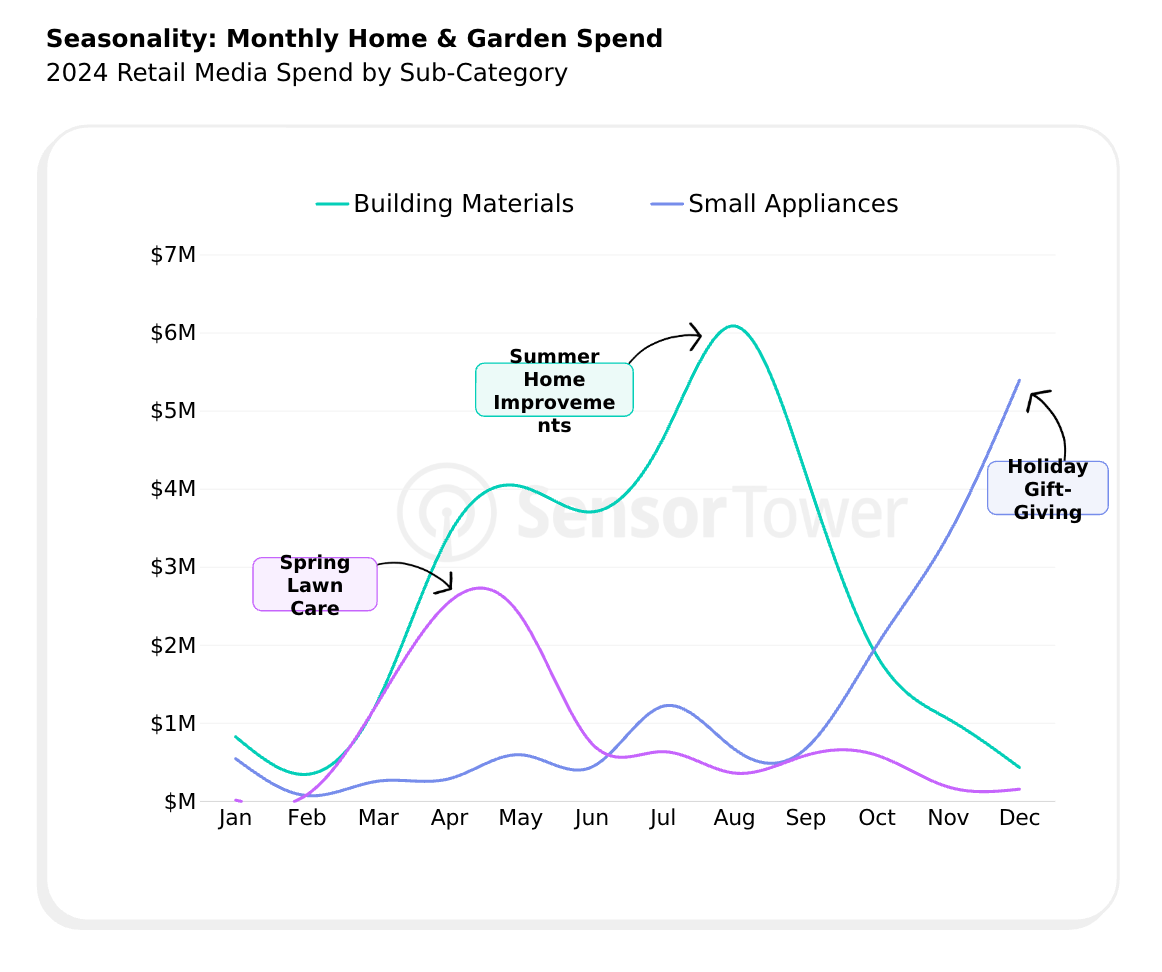 The Home and Garden sector, for example, heavily fluctuates based on seasonal events like spring lawn care and summer home improvements. To maximize impact, brands must consider the unique patterns for their category and make strategic decisions about when to compete and what it will take to make an impact.